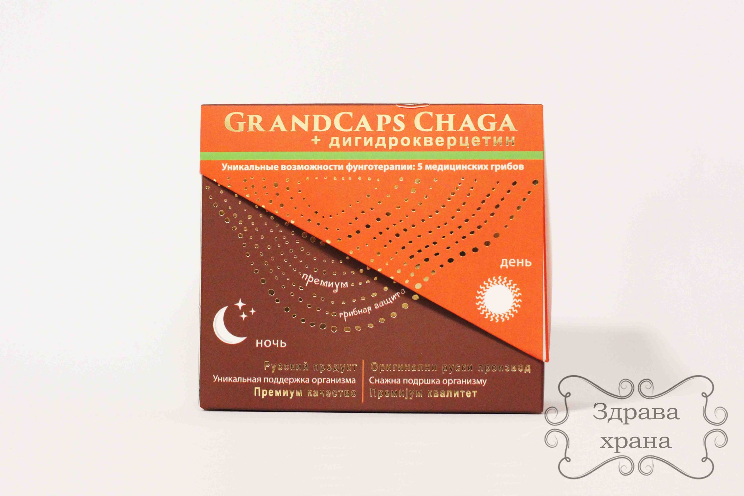 GrandCaps Chaga dan i noć kapsulе predstavljaju fitokompleks i premium preparat koji je nastao na osnovu najnovijih istraživanja, koja se odnose na imunološku aktivnost medicinskih gljiva, sprovedenih u Rusiji.