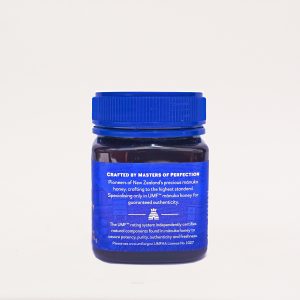 Za razliku od običnog meda, manuka sadrži snažno antibakterijsko jedinjenje MGO (metilglioksal), a njegova jačina se meri oznakom UMF (Unique Manuka Factor). UMF 10+ označava pouzdano prisustvo bioaktivnih jedinjenja kao što su MGO (metilglioksal), DHA i leptosperin, koji zajedno daju ovom medu snažna antibakterijska i regenerativna svojstva.