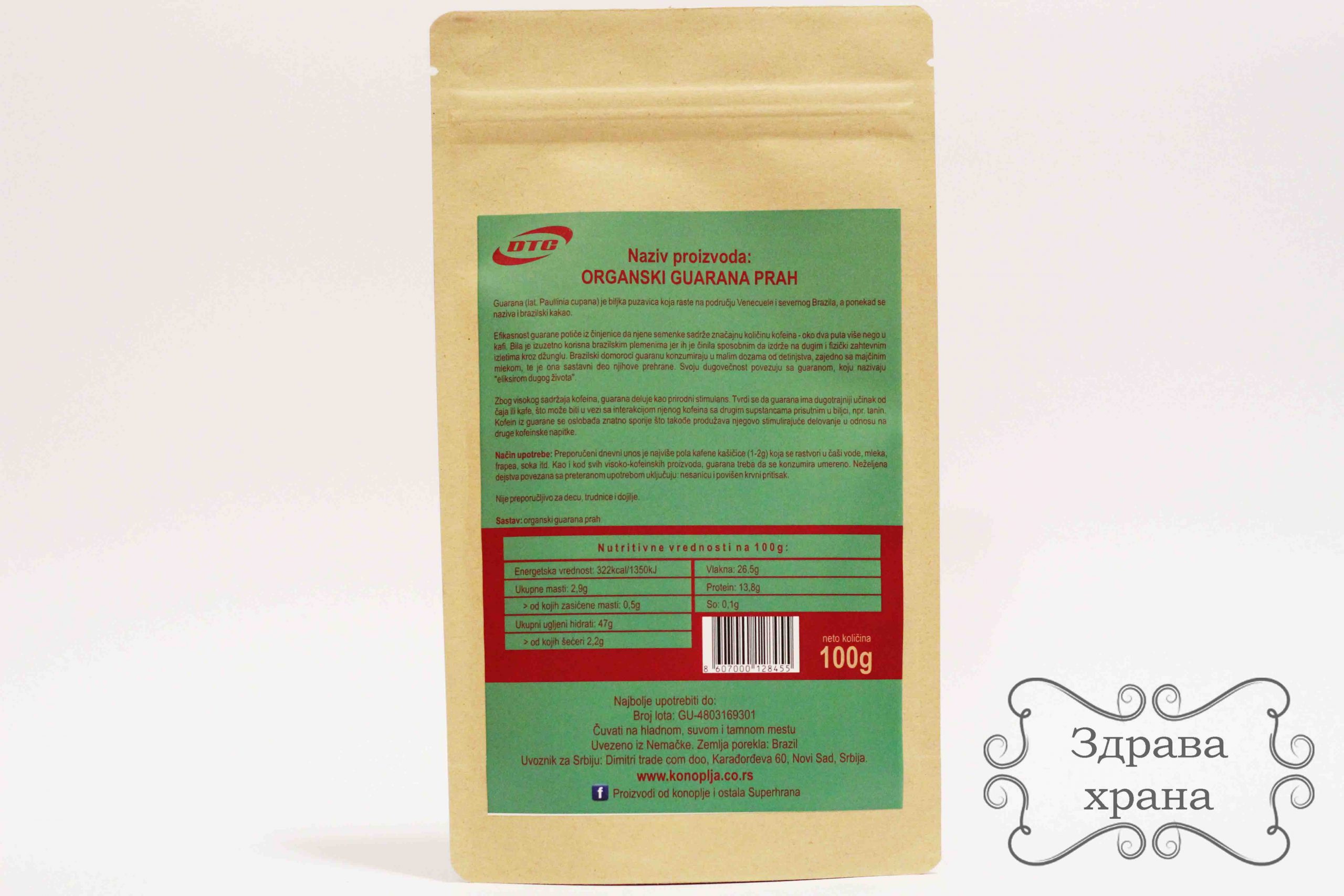 ⚖️ Organska guarana u prahu je pakovani proizvod, mase 100g.